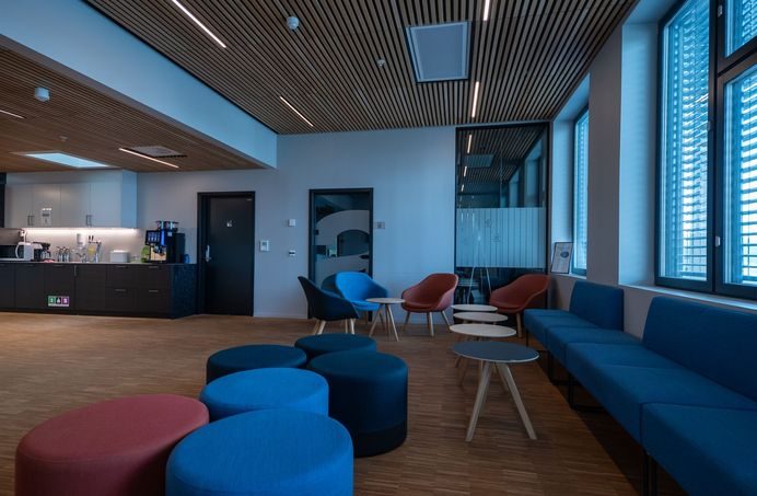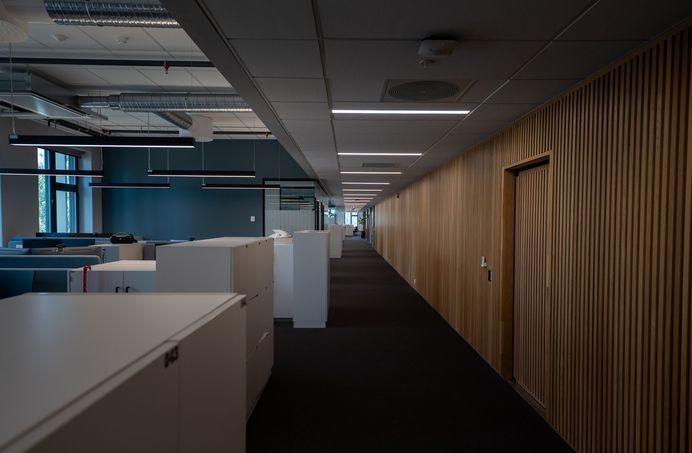 For Aspelin Ramm Eiendom har A Bygg bygget nytt hovedkontor for Motek og Ahlsell Norge. Prosjektet omfattet 29.500 kvm kontor, lager, verksted, showroom og butikk.